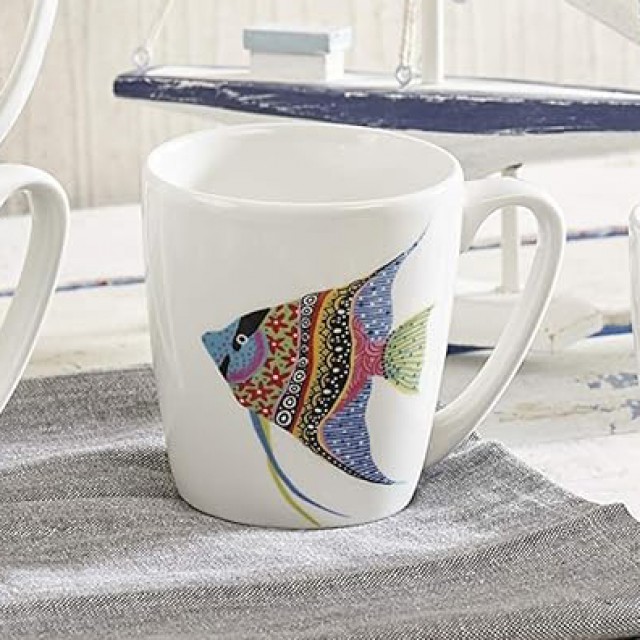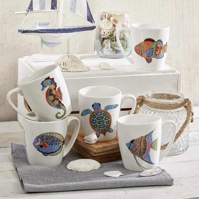 Savureaza-ti cafeaua sau ceaiul dintr-o superba cana cu decor marin, fabricata de mestesugari priceputi din portelan Fine China.