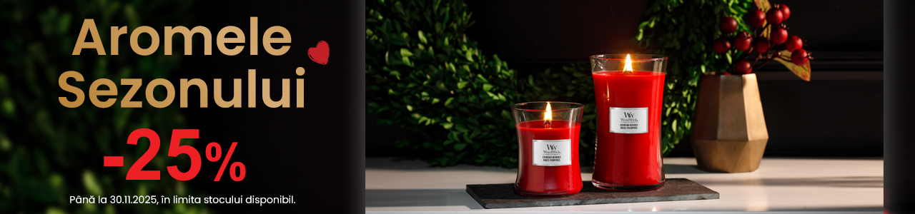 Fără TVA: 123,88RONLumanarile WoodWick® combina sunetul linistitor al unui foc de lemne, cu arome minunate, relaxante, ..