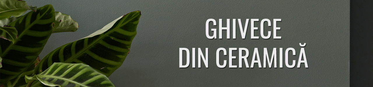 Vas decorativ din ceramica potrivit pentru interior sau exterior, insotit de o planta verde, c..