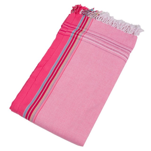 Fără TVA: 165,21RONProsopul Kikoy Nyali este foarte moale, in nuante de roz pal cu bordura fuchsia, iar dungile sale fine roz si turcoaz ii ofera un aer feminin care va cuceri toata lumea.