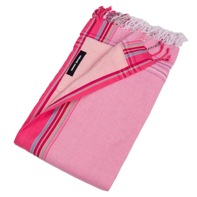 Prosopul de plaja Kikoy este un produs 2-in-1, devenit esential pentru momentele de relaxare la plaja. Pe o parte, un material traditional din Africa de Est numit Kikoy, realizat din bumbac pieptanat. Pe cealalta parte, un prosop fin din terry pentru uscare, prevazut cu un mic buzunar interior. Un prosop Kikoy chic si practic.