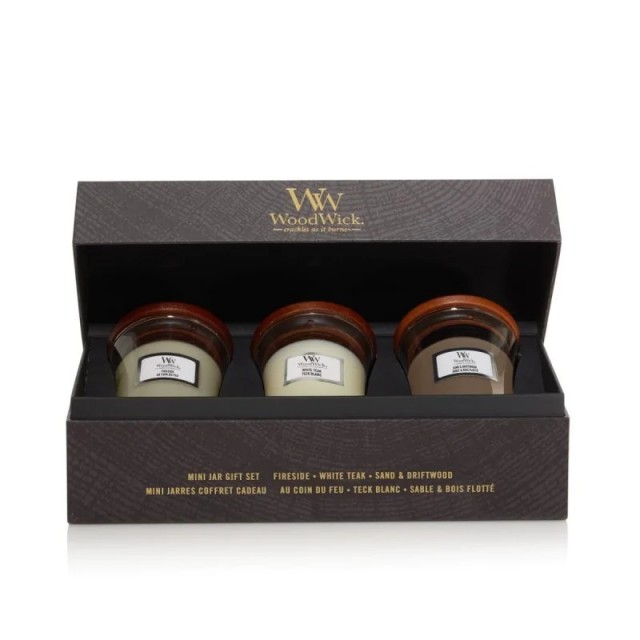 Fără TVA: 165,21RONSet cadou WoodWick Woody – Răsfăț olfactiv pentru orice ocazie!