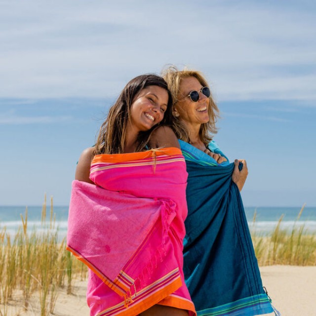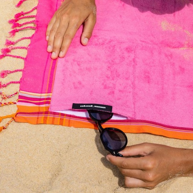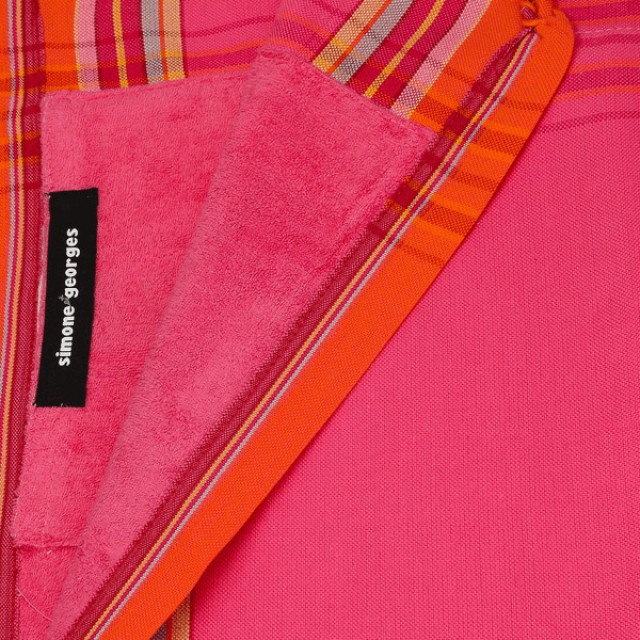 In nuante intense de roz fucsia, completat de o bordura portocalie si un interior din bumbac terry roz, acest model ofera un efect vizual energic si plin de personalitate. Moale, confortabil si plin de stil, este alegerea perfecta pentru a iesi in evidenta la plaja sau la piscina.