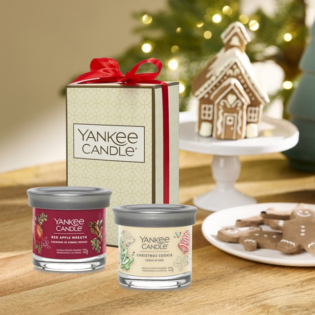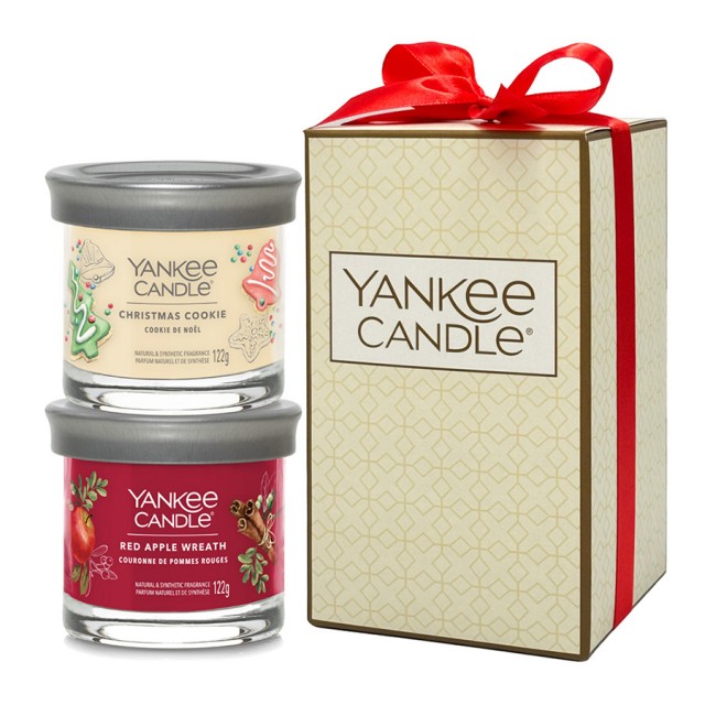 Setul cadou contine doua lumanari parfumate Yankee Candle Borcan Mic 122g in pahar de sticla, doua arome festive. Un cadou delicat si plin de farmec, perfect pentru a oferi mici bucurii parfumate celor dragi in preajma Craciunului.