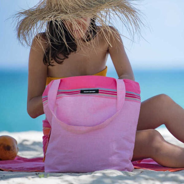 Geanta de plaja de la Simone et Georges este accesoriul ideal pentru vara ta — practica, usoara si plina de culoare, perfecta pentru a transporta tot ce ai nevoie la plaja sau in escapadele de weekend.